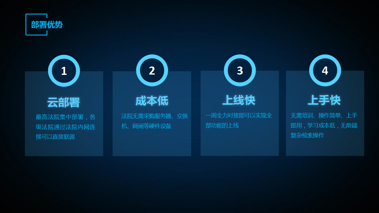 2.成本低——法院无需采购服务器、交换机、网闸等硬件设备