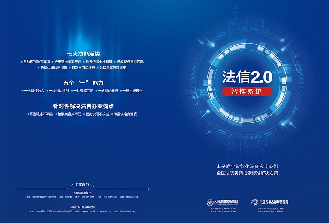 在这一背景下,人民法院出版社和中国司法大数据研究院,按照最高人民法院信息中心的部署,依托最高人民法院裁判文书网、法院大数据管理和服务平台以及“法信”平台三大数据平台的资源,融合两家团队各自的技术内容优势,攻坚研发了这套专门针对法院办案系统电子卷宗进行智能化知识服务推送的系统 ——“法信2.0智推系统”。日前,最高人民法院专门召开关于“法信2.0智推系统”电子卷宗深度应用推进会议,部署落实该系统与全国法院电子卷宗系统对接融合。