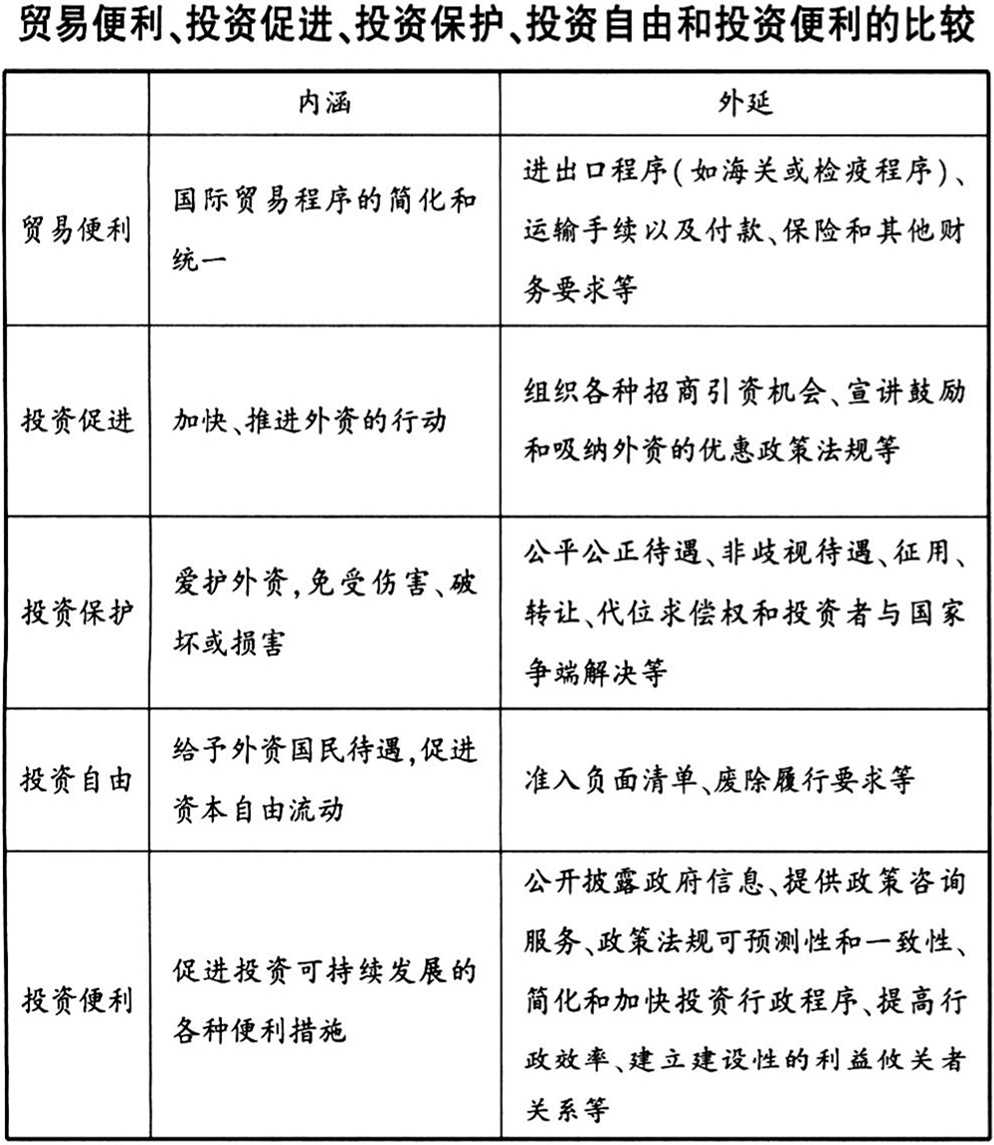 的确,无论是在理论上还是在实践中,“投资便利”与“贸易便利”“投资促进”“投资保护”“投资自由”这些术语存在着重叠交叉的现象,故长期以来它们都是难以切割的。